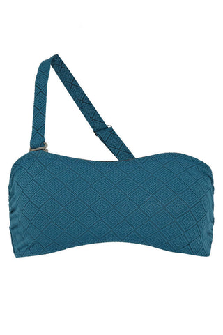 A deep teal colourway with geometric cut out motif in a woven fabric and lined with a matching colour giving it a deep textured look.