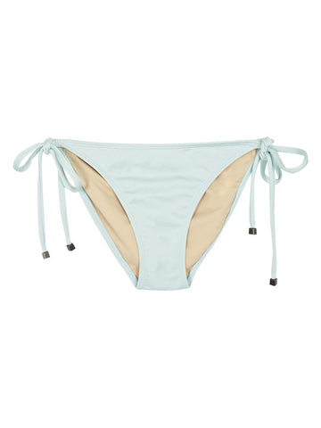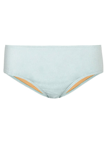 This thick luxurious smooth baby blue swim fabric features a slight sheen and subtle nude lining.