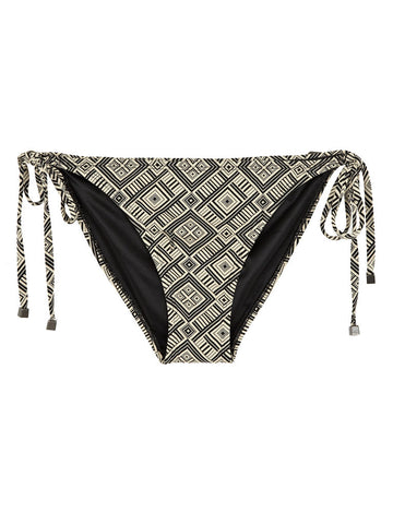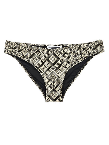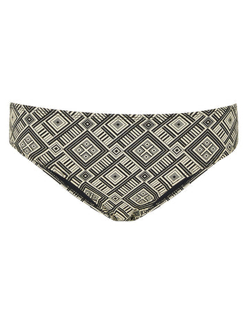A soft thick matte nude swim fabric with repetitive black geometric print throughout. Featuring black lining for a sophisticated finish.