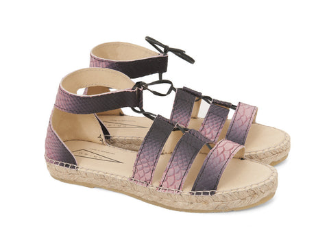 A very soft thin textured snakeskin leather in a charcoal and cream colour combination.