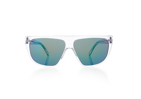 The frame features a transparent acetate of no colour with contrasting matte dark brown tortoiseshell temples.