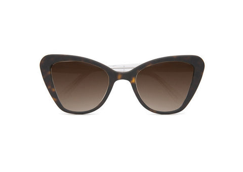 The frame features a transparent acetate of no colour with contrasting matte dark brown tortoiseshell temples.