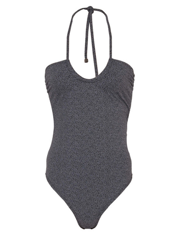 • A soft black woven swim fabric with a micro grey and white spot throughout creating a speckle print. This fabric is complimented with a thin black lining.