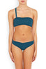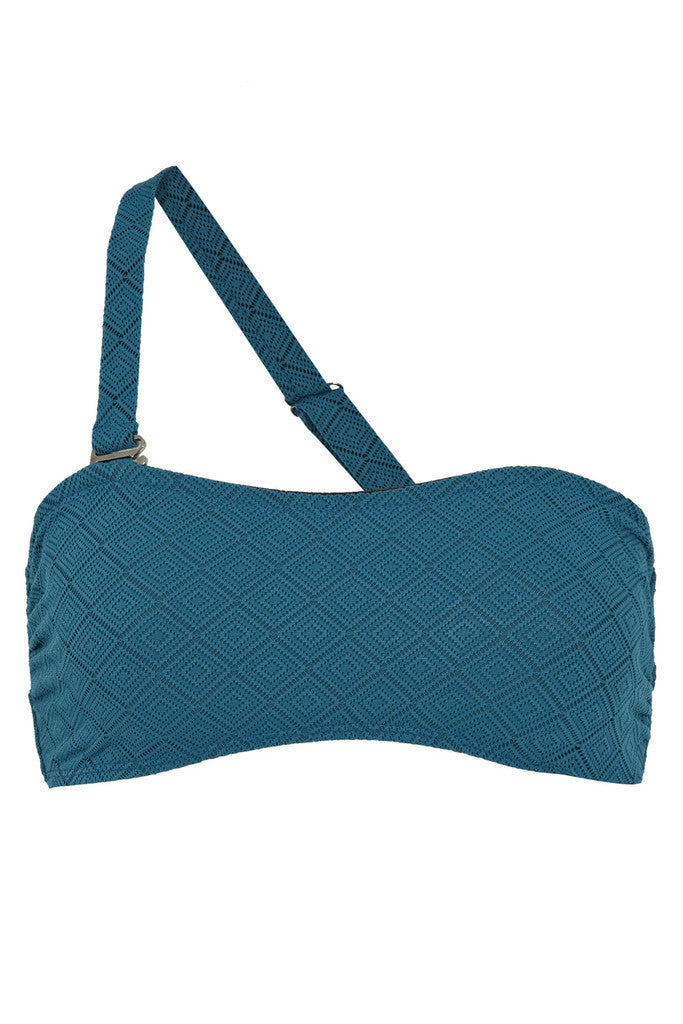 Clean lines and a chic silhouette, the Barcelona is a wardrobe staple. This bandeau has a double layered front, which is suitable for smaller busts, and a detachable asymmetric strap across the decolletage. To avoid tanlines and create a new look, remove the strap. There is a gunmetal hook and fabric fastening at the center back.