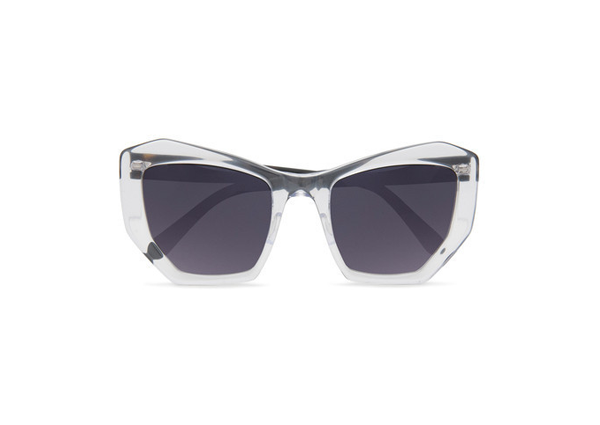 The Brasilia sunglasses are inspired by the modern, geometric architecture of the Brazilian city. Cut from a single piece of acetate and hand finished.