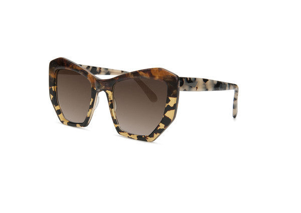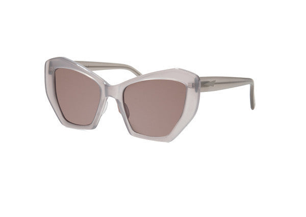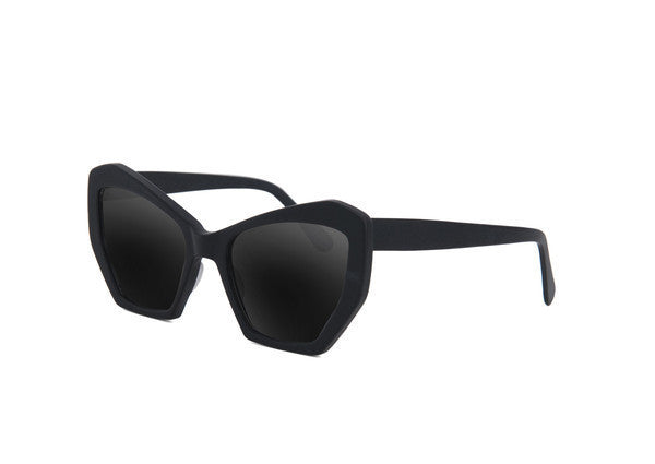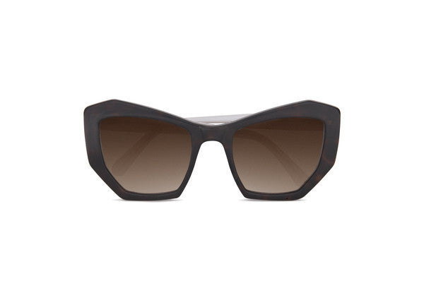 The Brasilia sunglasses are inspired by the modern, geometric architecture of the Brazilian city. Cut from a single piece of acetate and hand finished.