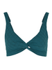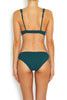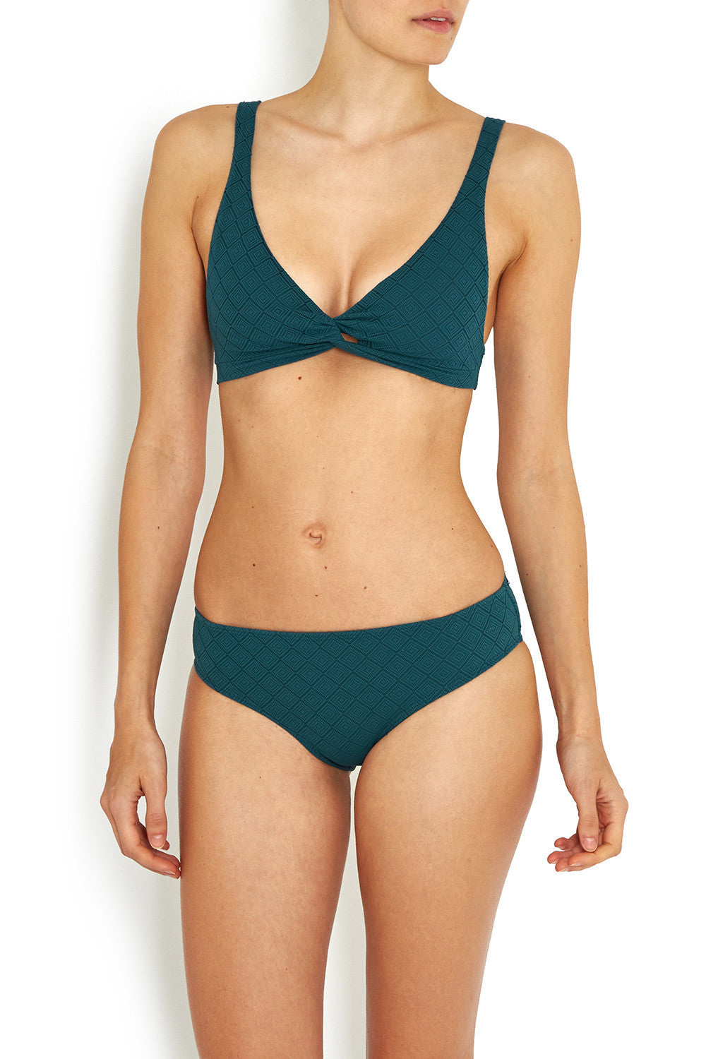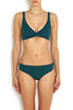 The Buzios bikini top is a 70s sporty shape finished with a twist-knot front and a low back, this shape works well for all cup sizes. With a soft triangle style cup, the top offers good support with a medium amount of coverage. The straps are adjustable and fixed at the back with a gunmetal hook and fabric fastening at the center back.