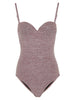 A classic feminine style with a smooth, sculpted silhouette. This style is suitable for those with medium to larger cup sizes. The moulded underwire cups and built in padding offers additional support with a subtle lift. The bust size can seem a little large due to nature of cup so we suggest advising the customer to size down if it is an issue. There are no fastenings but the solid front and covered back offer great support and coverage. The leg is cut high with a medium bottom coverage and it has detachable straps to provide additional support.