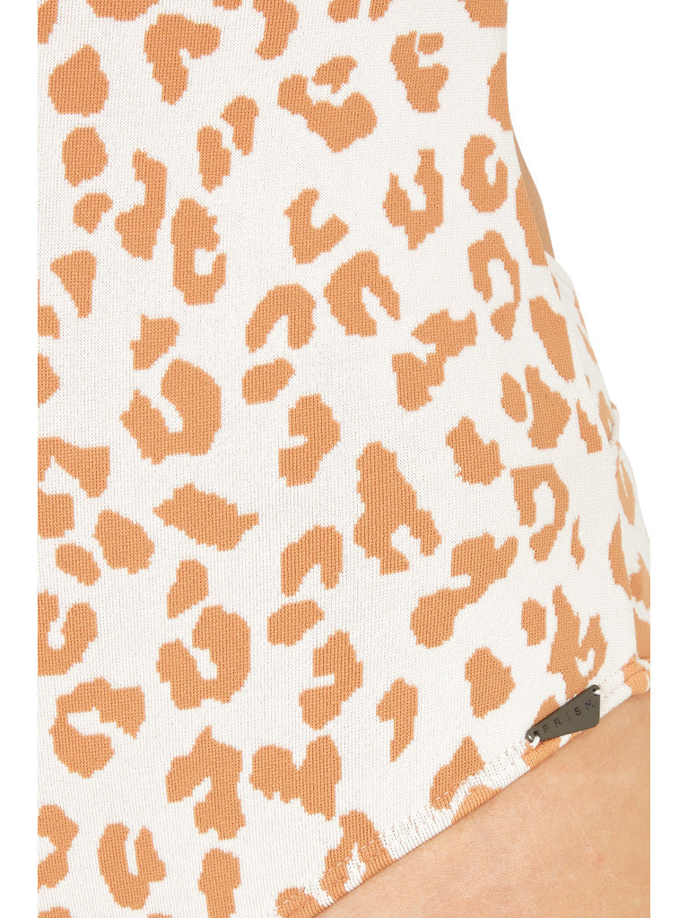 • A soft thick matte nude swim fabric with repetitive black geometric print throughout. Featuring black lining for a sophisticated finish.