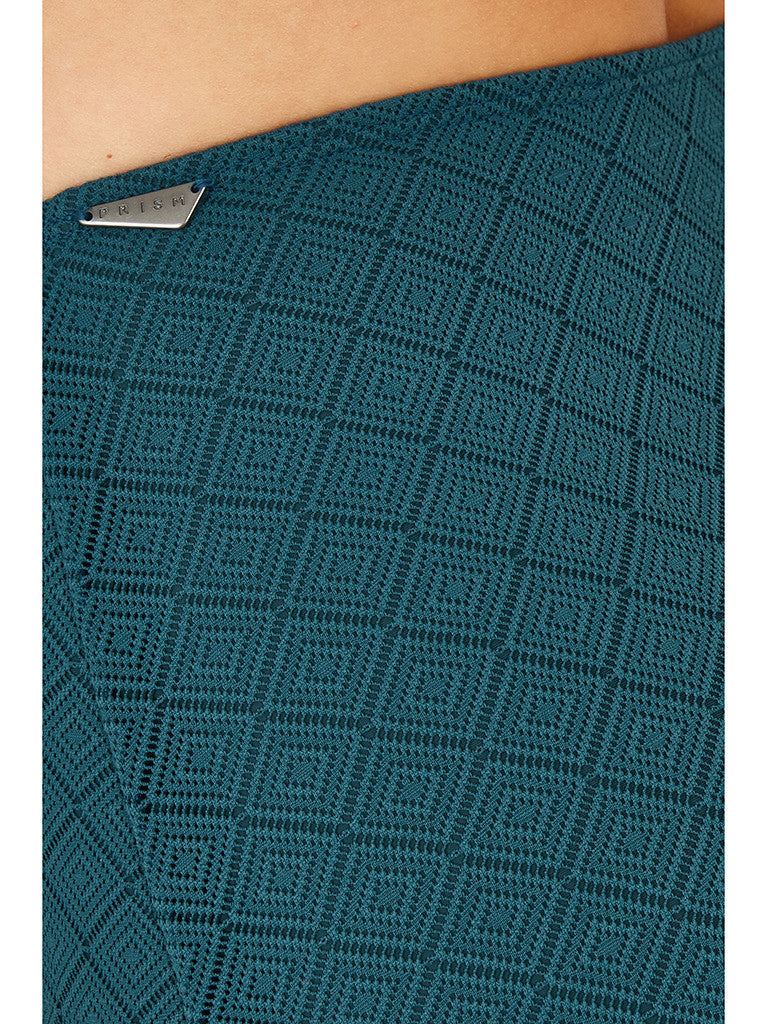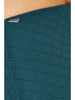 • A deep teal colourway with geometric cut out motif in a woven fabric and lined with a matching colour giving it a deep textured look.