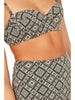 • A soft thick matte nude swim fabric with black geometric print throughout and featuring black lining for a sophisticated finish.