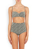 • A soft black woven swim fabric with a micro grey and white spot throughout creating a speckle print. This fabric is complimented with a thin black lining.