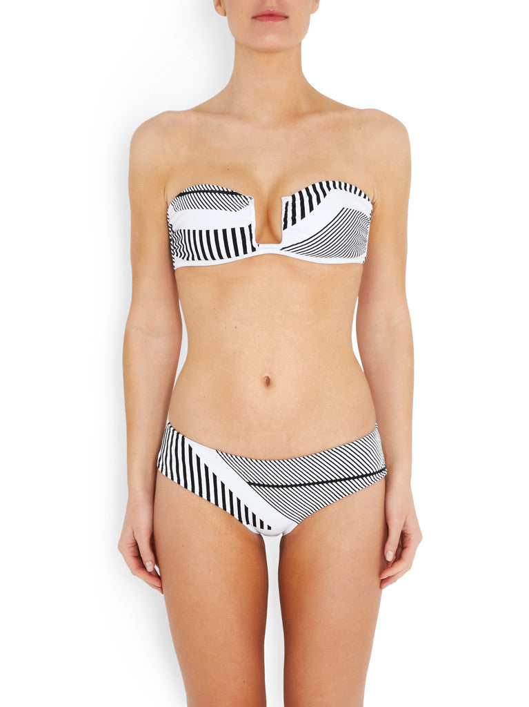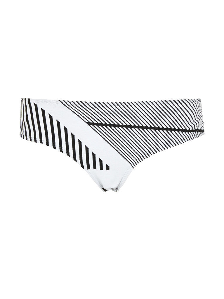 The Sporty Mahe bikini bottom features a slight cut out on each side of the waistband. This bottom sits low on the hips, with a low cut leg and full bottom coverage.
