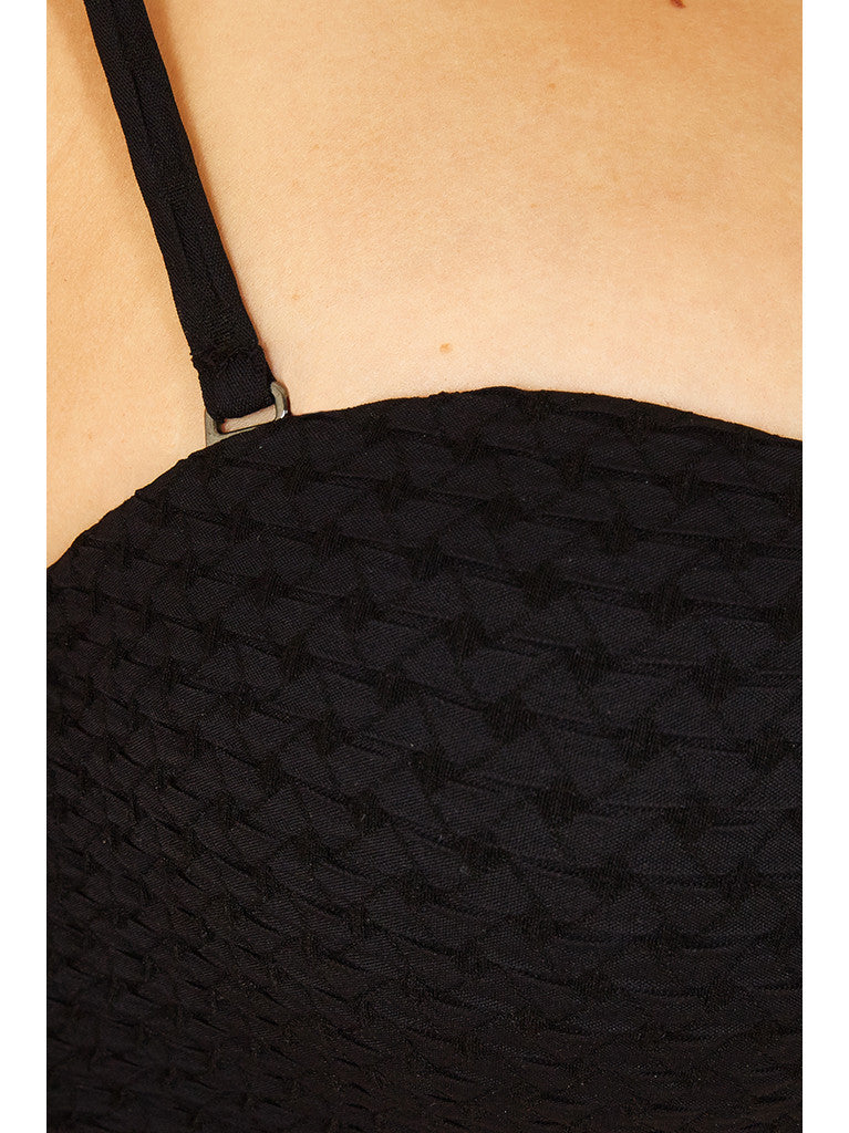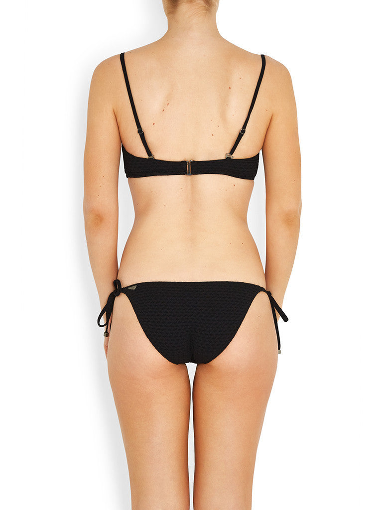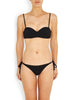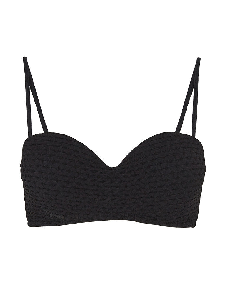 The Sophisticated Montauk bikini top is ideal for medium to larger cup sizes. The moulded cup with underwiring and built in padding offers additional support with a subtle lift. The Montauk can seem a little large due to nature of cup so we suggest advising the customer to size down if it is an issue. The straps are adjustable and removeable. There is a gunmetal hook and fabric fastening at the center back