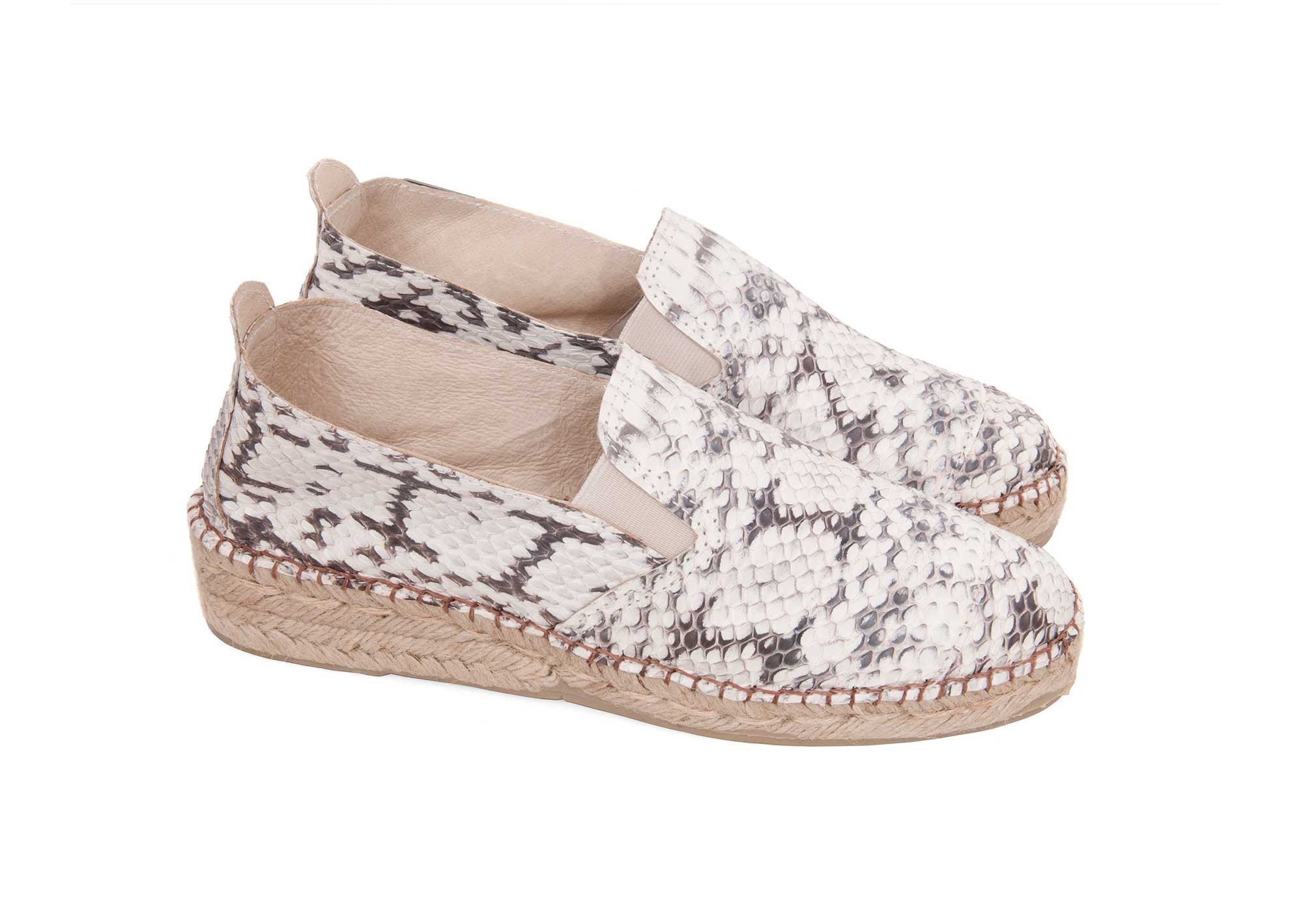 The classic PRISM slip on espadrilles feature two elastic tabs in the upper that allow for a close fit. The small tab at the back of the ankle assists with pulling on and off. The classic yute sole has a slight wedge for additional comfort. All PRISM shoes are handmade in Spain using the finest leathers exclusively made for PRISM.
