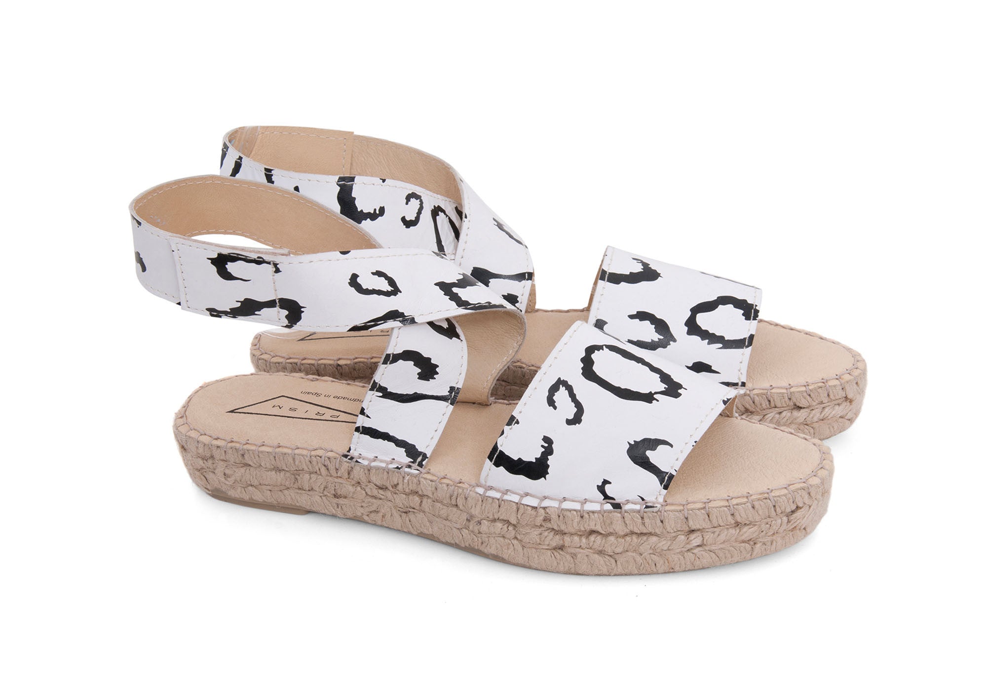 • A soft thin white leather with square cut out details and a thin black rope underlay. The leather is perforating allowing skin to show through.