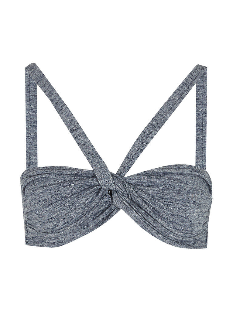 The Salinas is a sophisticated take on the bandeau top. The twist front and soft cups are suitable for all bust sizes. The removable strap crosses over the d̩colletage adding additional support if required. Remove the strap to avoid tan lines and to create a whole new more simple look.