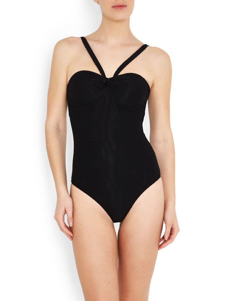 The Sardinia one-piece channels 1920's glam. The twist front and soft cups are suitable for all bust sizes. The strap crosses over the d̩colletage adding additional support if required. Remove the strap to avoid tan lines and to create a whole new more minimal look. The legs are high cut with slight yet flattering bottom coverage.