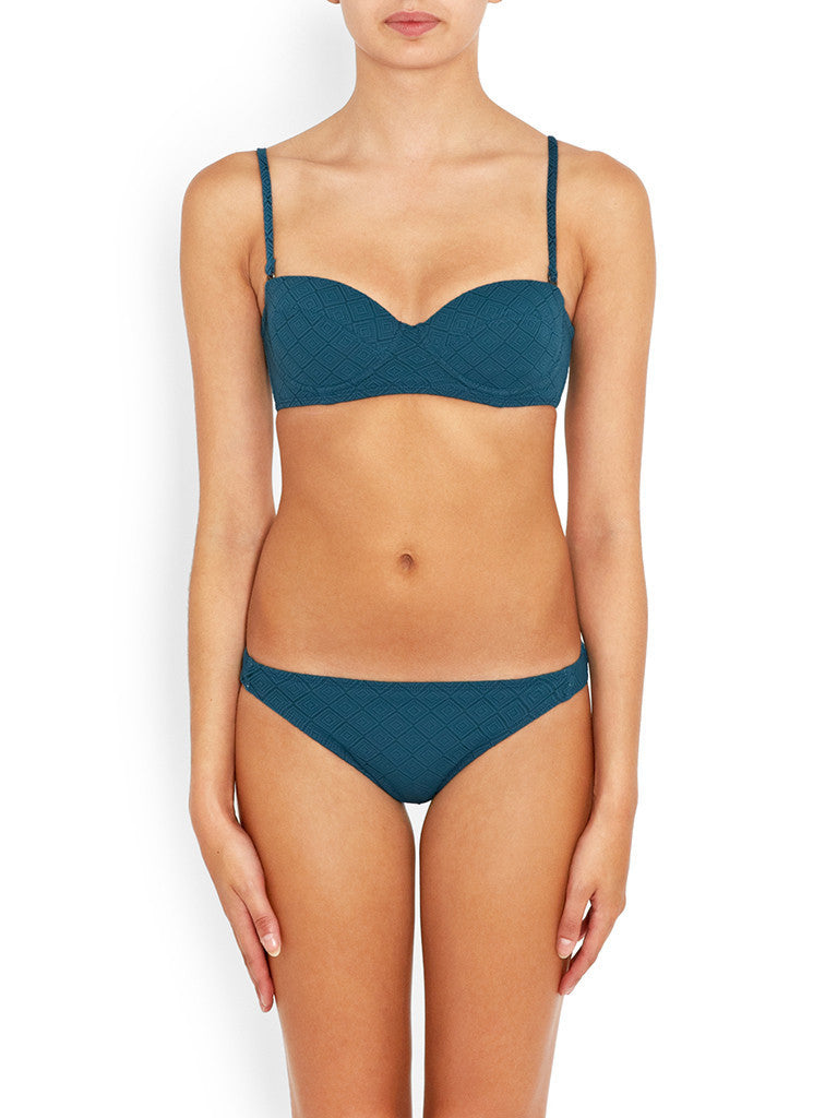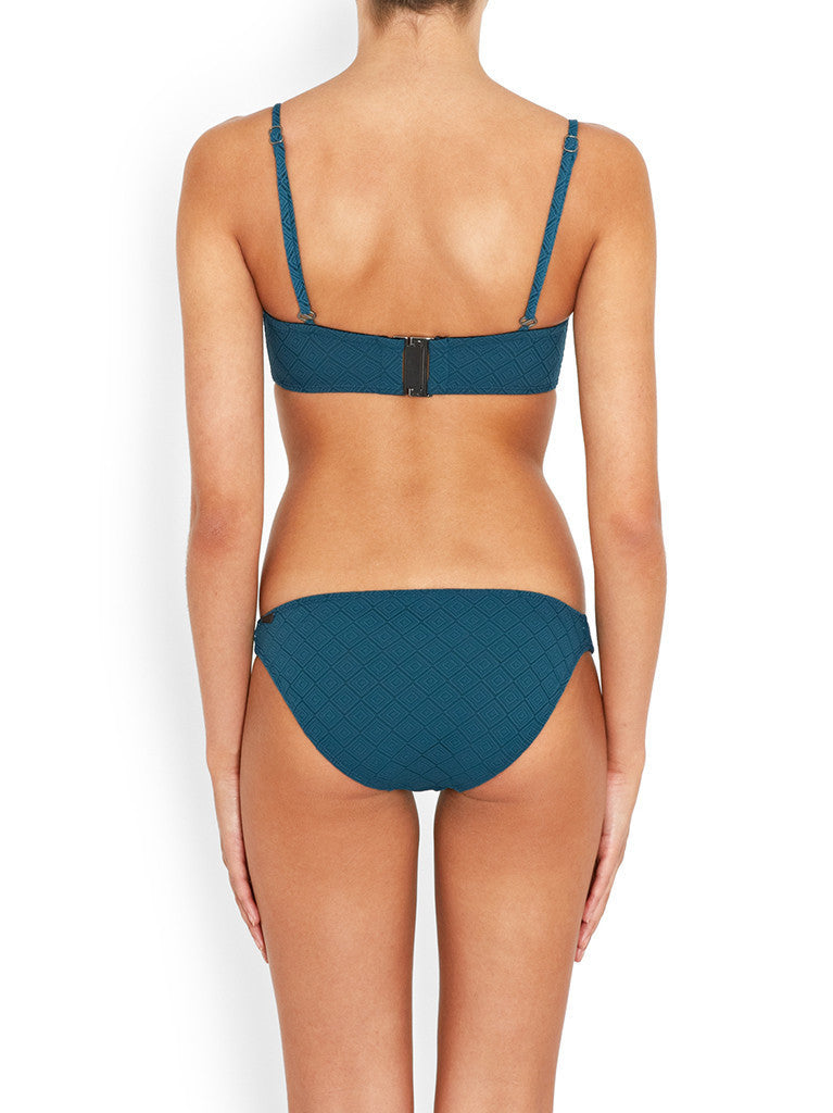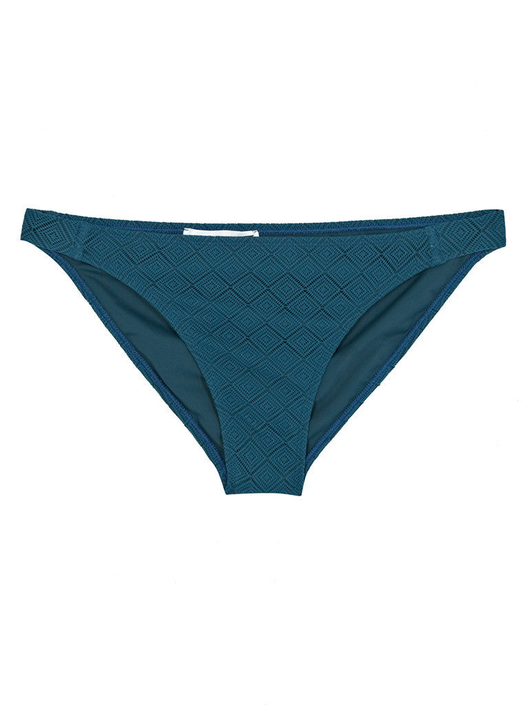 The sporty Shikoku bikini bottom has a high cut leg, thin elastic side tabs and slight yet flattering bottom coverage.