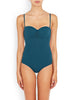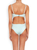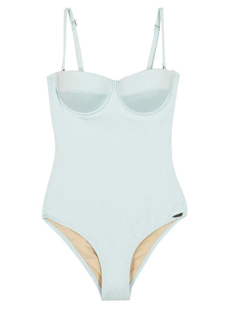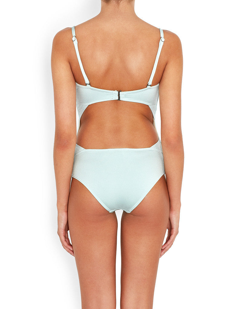 In true feminine style the St Barts is a stand out piece. This flattering sexy silhouette with firm underwire cups is suitable for medium to larger busts. The open cut low back fastens with a gunmetal hook and fabric hook, with adjustable and removable straps to avoid unsightly tan lines. The high cut leg and slight yet flattering bottom coverage complete the look.