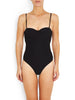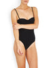 In true feminine style the St Barts is a stand out piece. This flattering sexy silhouette with firm underwire cups is suitable for medium to larger busts. The open cut low back fastens with a gunmetal hook and fabric hook, with adjustable and removable straps to avoid unsightly tan lines. The high cut leg and slight yet flattering bottom coverage complete the look.